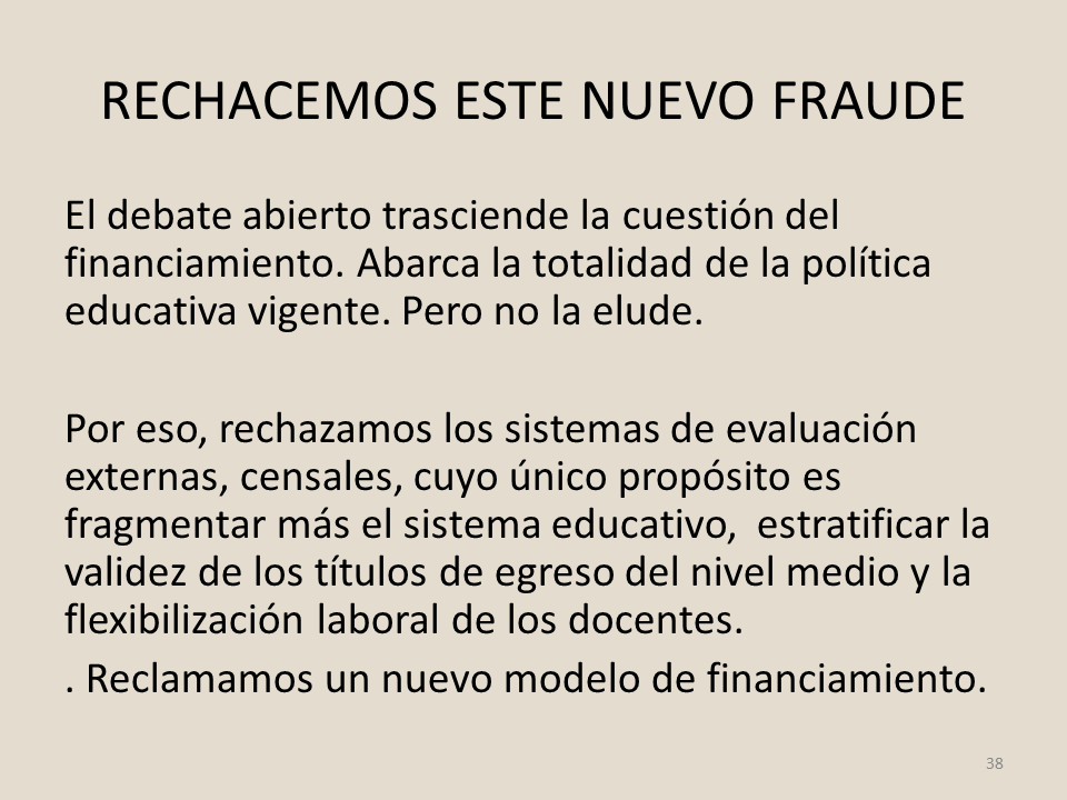 evaluación externa censal ni ranking de escuelas y docentes, lo que ha evitado